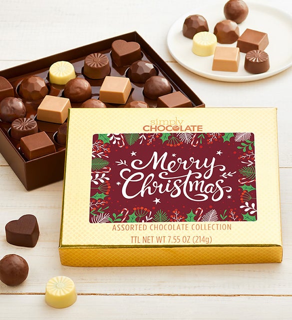 Make any Christmas celebration merrier with a box of luxurious chocolates. This gift features an assortment of rich truffles in a variety of unique flavors, like milk chocolate mousse, dark chocolate salted caramel, milk chocolate coconut crème, dark chocolate raspberry, and dark chocolate Himalayan sea salt.It’s the perfect holiday gift to share with coworkers, neighbors, family, and friends. Kosher OU-Dairy.